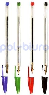 Długopis ze średnią końcówką 1.0 mm. Długopis jednorazowy. Przezroczysta obudowa umożliwia kontrolę zużycia tuszu. Zakończenie i skuwka w kolorze tuszu. Długość linii pisania 2800m.