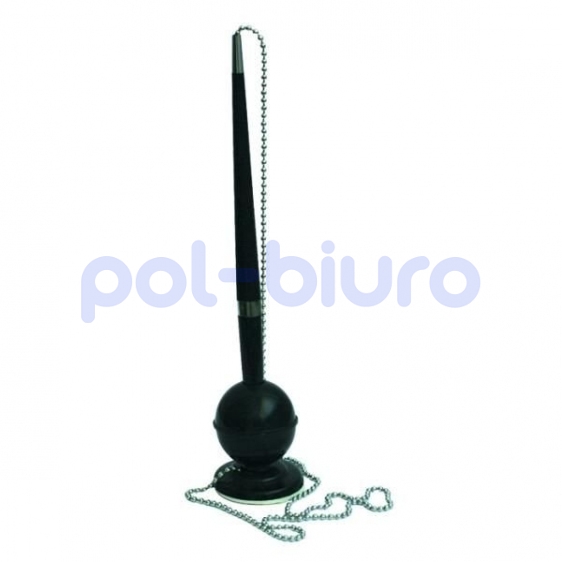 Wygodny w użyciu długopis połączony metalowym łańcuszkiem z samoprzylepną podstawką w kształcie kulki, utrzymującą długopis w pozycji pionowej; podstawka ma możliwość obrotu; kolor wkładu niebieski. Produkt posiada certyfikat jakości ISO.