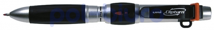 Wielofunkcyjny długopis wyposażony w dwa wkłady piszące, ołówek i gumkę. Posiada obrotowy klips umożliwiający przypięcie go w dogodnej pozycji np. do kieszeni marynarki, możliwość spięcia pliku dokumentów. Posiada specjalny uchwyt do przymocowania smyczy. Grubość linii pisma 0,2mm; grubość grafitu 0,5mm.