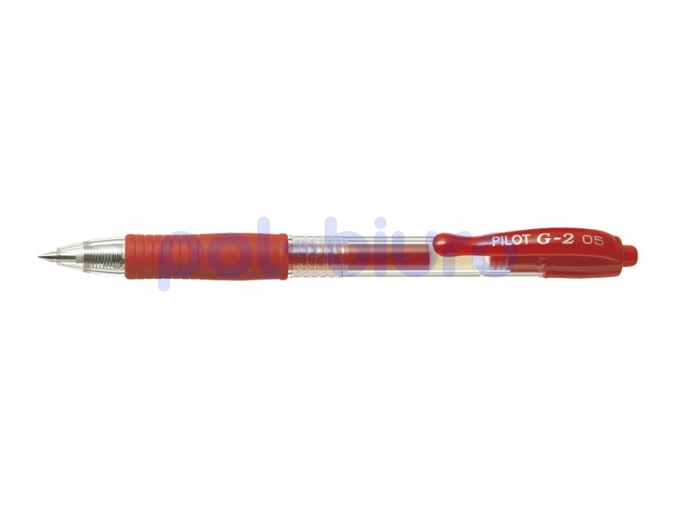 Długopis z wymiennym wkładem żelowym zaopatrzonym w gumowany uchwyt w kolorze wkładu. Grubość linii pisania 0,32 mm, długość linii pisania 1200 m. Kolor czerwony.