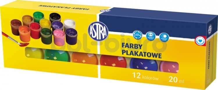 Farby plakatowe ASTRA 12 Kolorów 20 ml