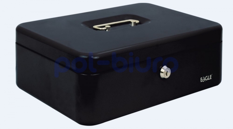 Kasetka na pieniądze Eagle wykonana z metalu, zamykana na kluczyk. Posiada plastikowy wkład na bilon. Kolor czarny.