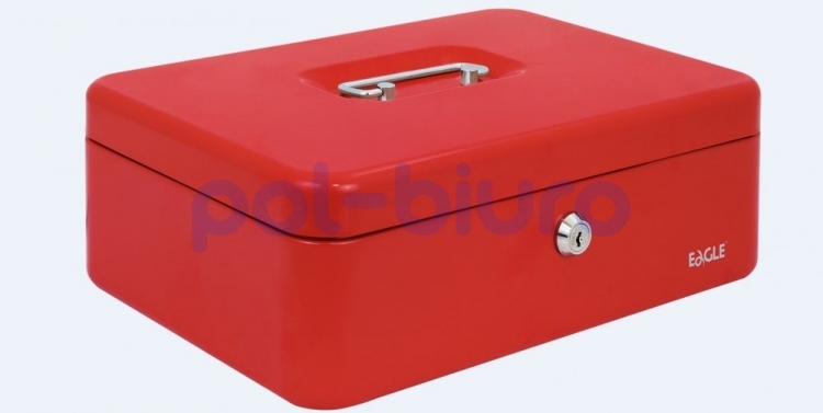 Kasetka na pieniądze Eagle wykonana z metalu, zamykana na kluczyk. Posiada plastikowy wkład na bilon. Kolor czerwony.