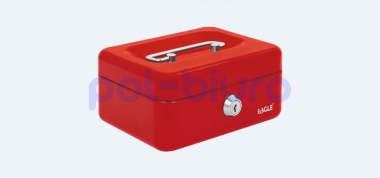 Kasetka na pieniądze Eagle wykonana z metalu, zamykana na kluczyk. Posiada plastikowy wkład na bilon. Kolor czerwony.