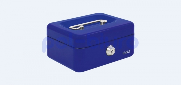 Kasetka na pieniądze Eagle wykonana z metalu, zamykana na kluczyk. Posiada plastikowy wkład na bilon. Kolor niebieski.