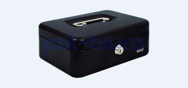 Kasetka na pieniądze Eagle wykonana z metalu, zamykana na kluczyk. Posiada plastikowy wkład na bilon. Kolor czarny.