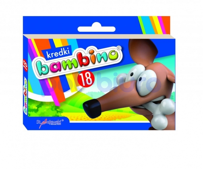 Oryginalne, polskie tradycyjne kredki Bambino świecowe. Znane od lat, cieszą się nieustającą popularnością. Znakomicie sprawdzają się w domu, szkole, przedszkolu. Miękko i dokładnie rysują. Dokładnie pokrywają powierzchnie papieru, trwałe i żywe kolory. Właśnie takich kredek potrzebuje dziecko by naprawdę cieszyć się rysowaniem. Opakowanie zawiera 18 różnego koloru kredek świecowych.