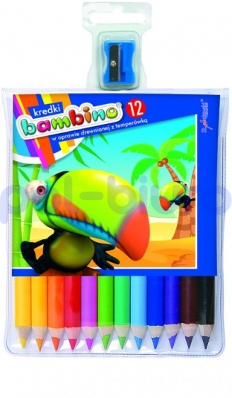 Kredki BAMBINO w oprawie drewnianej 12 kolorów dł. 15 cm + temperówka