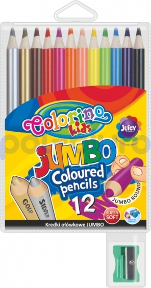 Kredki COLORINO ołówkowe okrągłe jumbo 12 kolorów + temperówka