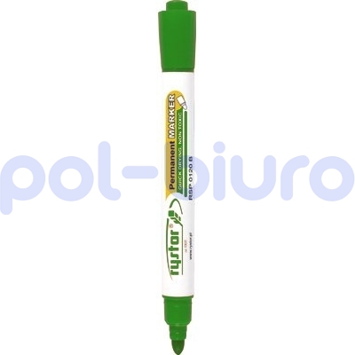 Marker do pisania po każdej powierzchni papier, szkło, metal, plastik. Jest wodoodporny, niezmywalny, szybkoschnący. Nietoksyczny tusz wyposażony w okrągłą końcówkę piszącą o długości linii pisania 200m, grubość linii pisania 2m. Kolor zielony.