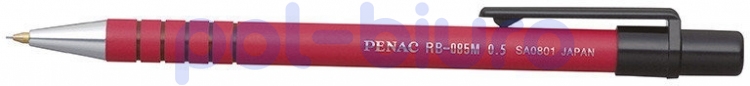Ołówek w gumowej obudowie z antypoślizgowymi żłobieniami. Posiada gumkę do wycierania śladów oraz klips do przyczepiania. Ołówek wykorzystuje dwa systemy zero slider " - gwarantujący niemal 100% zużycie grafitu, oraz "" cushion lead "" - amortyzujący, chroniący grafit przed złamaniem. Grubość grafitu 0,5 mm. Kolor czerwony.