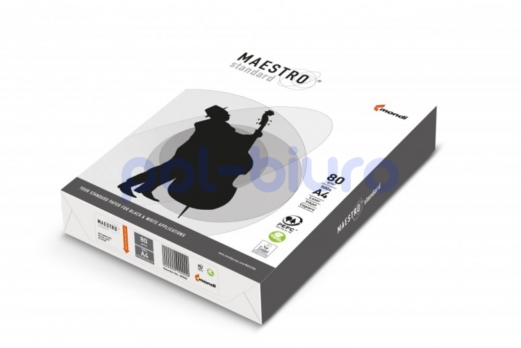 Papier biurowy codziennego użytku o białości 146 CIE. Zalecany do stosowania w kserokopiarkach oraz drukarkach laserowych i atramentowych. Zapewnia bezawaryjną pracę urządzeń biurowych. Papiery Maestro są odporne na starzenie – spełniają normę ISO 9706. Gramatura 80 g/m2.