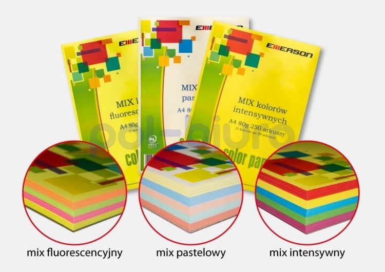 EMERSON COLOR PAPER dostępny jest w odcieniach pastelowych, intensywnych i fluorescencyjnych, o gramaturach 80g/m2 i 160g/m2, formacie A4. Produkowany zgodnie z certyfikatami potwierdzającymi wdrożenie środowiskowego systemu jakości oraz systemu zarządzania jakością. Szeroka paleta kolorów oraz najwyższa jakość tych produktów zadowolą nawet najbardziej wymagających klientów. Oferowane papiery doskonale sprawdzają się w różnego rodzaju urządzeniach biurowych
