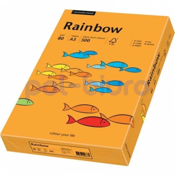 Wysokiej jakości, kolorowy papier, bezdrzewny, barwiony w masie, o szerokim wachlarzu kolorystycznym. Zalecany do wydruków faksowych, korespondencji oraz zaproszeń i ulotek. Pakowany w eleganckie przezroczyste opakowanie. Dostępny w 25 kolorach, w gramaturze 80 i 160 g/m2. Osiągalny w formatach: A4 80 g/m2, A4 160 g/m2 i A3 80 g/m2. W ofercie Rainbow dostępny jest również mix kolorów pastelowych, mix kolorów intensywnych (pakowane po 5 kolorów x 20 arkuszy), oraz mix kolorów neonowych (pakowane po 4 kolory x 50 arkuszy)