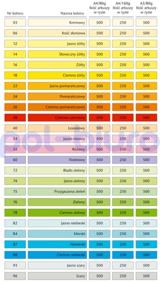Wysokiej jakości, kolorowy papier, bezdrzewny, barwiony w masie, o szerokim wachlarzu kolorystycznym. Zalecany do wydruków faksowych, korespondencji oraz zaproszeń i ulotek. Pakowany w eleganckie przezroczyste opakowanie. Dostępny w 25 kolorach, w gramaturze 80 i 160 g/m2. Osiągalny w formatach: A4 80 g/m2, A4 160 g/m2 i A3 80 g/m2. W ofercie Rainbow dostępny jest również mix kolorów pastelowych, mix kolorów intensywnych (pakowane po 5 kolorów x 20 arkuszy), oraz mix kolorów neonowych (pakowane po 4 kolory x 50 arkuszy)