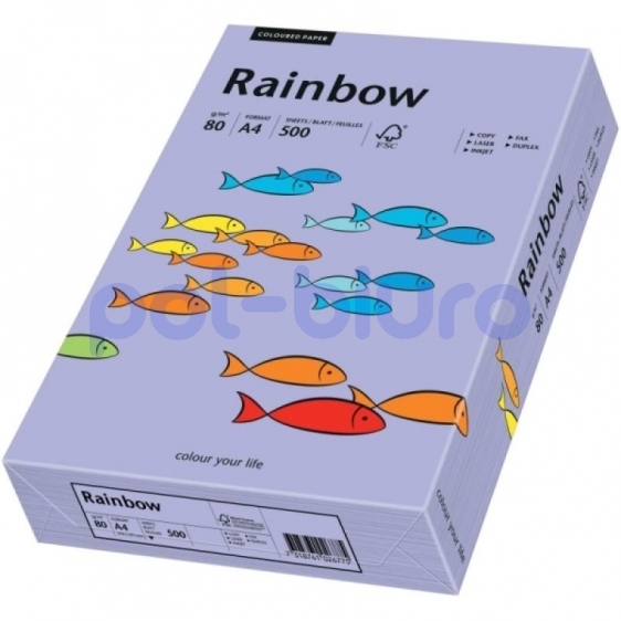 Wysokiej jakości, kolorowy papier, bezdrzewny, barwiony w masie, o szerokim wachlarzu kolorystycznym. Zalecany do wydruków faksowych, korespondencji oraz zaproszeń i ulotek. Pakowany w eleganckie przezroczyste opakowanie. Dostępny w 25 kolorach, w gramaturze 80 i 160 g/m2. Osiągalny w formatach: A4 80 g/m2, A4 160 g/m2 i A3 80 g/m2. W ofercie Rainbow dostępny jest również mix kolorów pastelowych, mix kolorów intensywnych (pakowane po 5 kolorów x 20 arkuszy), oraz mix kolorów neonowych (pakowane po 4 kolory x 50 arkuszy)