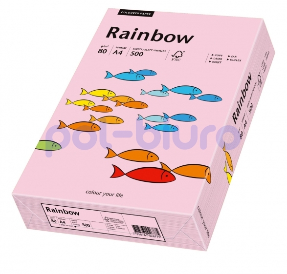 Wysokiej jakości, kolorowy papier, bezdrzewny, barwiony w masie, o szerokim wachlarzu kolorystycznym. Zalecany do wydruków faksowych, korespondencji oraz zaproszeń i ulotek. Pakowany w eleganckie przezroczyste opakowanie. Dostępny w 25 kolorach, w gramaturze 80 i 160 g/m2. Osiągalny w formatach: A4 80 g/m2, A4 160 g/m2 i A3 80 g/m2. W ofercie Rainbow dostępny jest również mix kolorów pastelowych, mix kolorów intensywnych (pakowane po 5 kolorów x 20 arkuszy), oraz mix kolorów neonowych (pakowane po 4 kolory x 50 arkuszy)