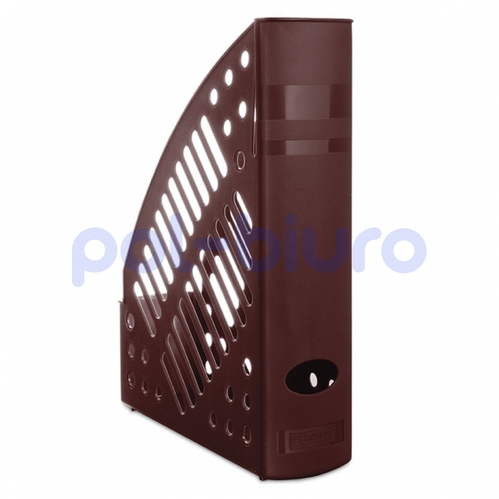 Pojemnik wykonany z twardego, odpornego na pęknięcia polistyrenu o ściętych, ażurowych bokach ułatwiających wkładanie i wyjmowanie dokumentów. Sztywna konstrukcja o zwiększonej stabilności mieści do 700 kartek A4 o gramaturze 80 g/m². Tworzywo przeznaczone do recyklingu, wymiary: 240x70x315mm. Kolor bordowy.