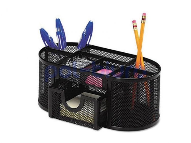 Przybornik ażurowy z 8 przegrodami Q-CONNECT Office Set metalowy czarny KF18472