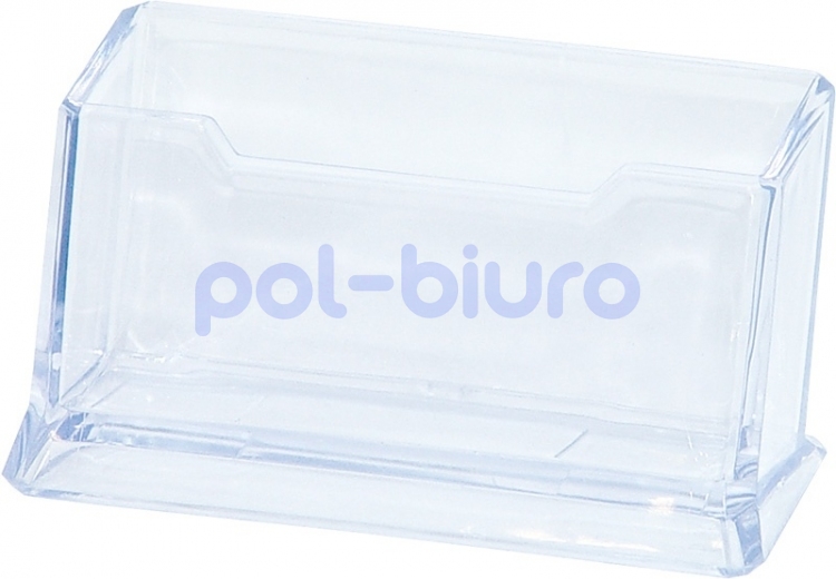 Przybornik na wizytówki z odpornego na pęknięcia polistyrenu. Dostosowany do standardowej wielkości wizytówek. Wymiary: 110 x 45 x 55 mm.