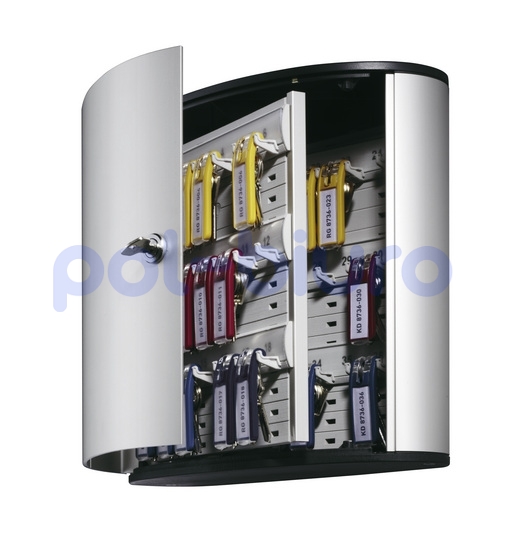 w skrzynce na klucze KEY BOX to optymalizacja w korzystaniu z kluczy w każdym biurze. Skrzynka na klucze jest dostępna w 3 rozmiarach. Najmniejsza wersja jest na 12 kluczy, średnia na 18 i 36 lub 54 klucze, a największa na 48 lub 72 klucze. Do każdej skrzynki dołączone jest opakowanie z sześcioma przykładowymi zawieszkami na klucze KEY CLIP. KEY BOX 36 Skrzynka na 36 zawieszek na klucze, do skrzynki dołączone jest opakowanie
