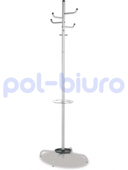Wykonane ze stali lakierowanej proszkowo na kolor czarny lub aluminium. Posiada uchwyt na parasole i podstawkę na ściekającą z nich wodę. Wysokość 187 cm, stabilna podstawa, średnica 62 cm. 8 uchwytów na ubrania.