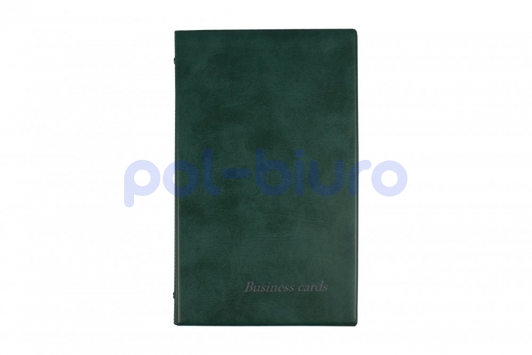 Okładka wykonana z najwyższej jakości folii PCV. Posiada 25 koszulek na wizytówki wpiętych w otwierany ring, umożliwiający wpięcie dodatkowych koszulek oraz łatwą ich segregację. Kolor ciemny zielony.