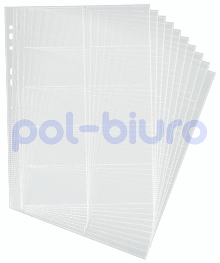 10 przezroczystych kieszonek z PP na 200 wizytówek o wymiarach 57 x 90 mm. Z uniwersalnymi dziurkami do wszystkich segregatorów.