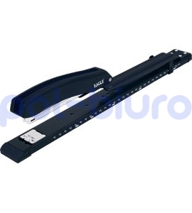 Metalowy zszywacz długoramienny, z wykończeniami z tworzyw sztucznych. Wyposażony w skalę długości wyskalowaną w centymetrach i calach, oraz ogranicznik głębokości zszywania maks. 300 mm. Posiada obrotowy mechanizm, zaginający zszywki do wewnątrz i na zewnątrz.