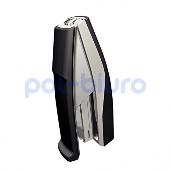 Łatwy i szybki do obsługi stojący na biurku zszywacz, wykonany z metalu oraz plastikowych elementów. Posiada ergonomiczny i miły w dotyku uchwyt, zszywa do 30 kartek, na zszywki 24/6. Ładowany od góry, mechanizm otwiera się o 180 stopni. Innowacyjna technologia precyzyjnego prowadzenia zszywki, zapobiegaj jej zacinaniu się. Gwarancja 3 lata. Kolor czarny.